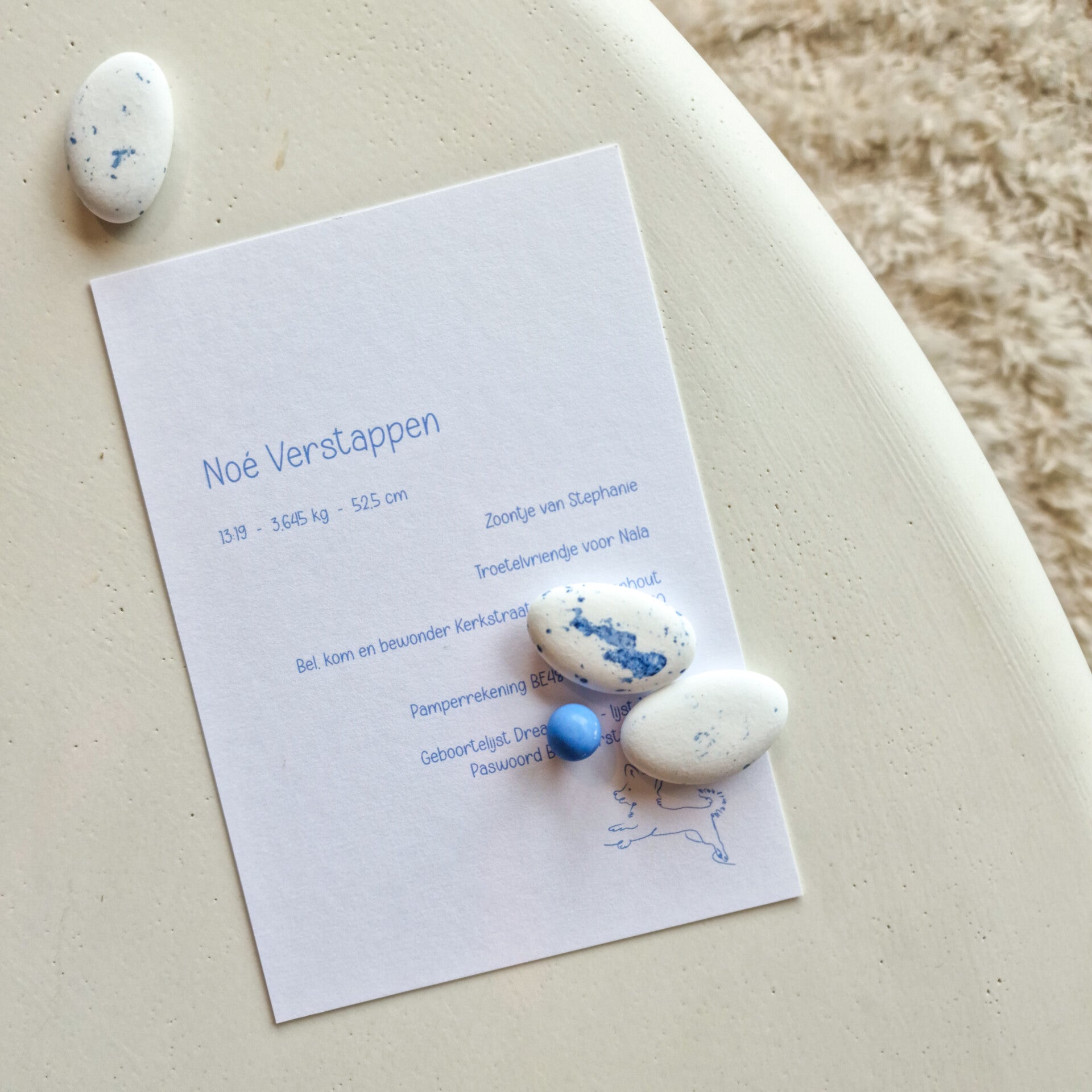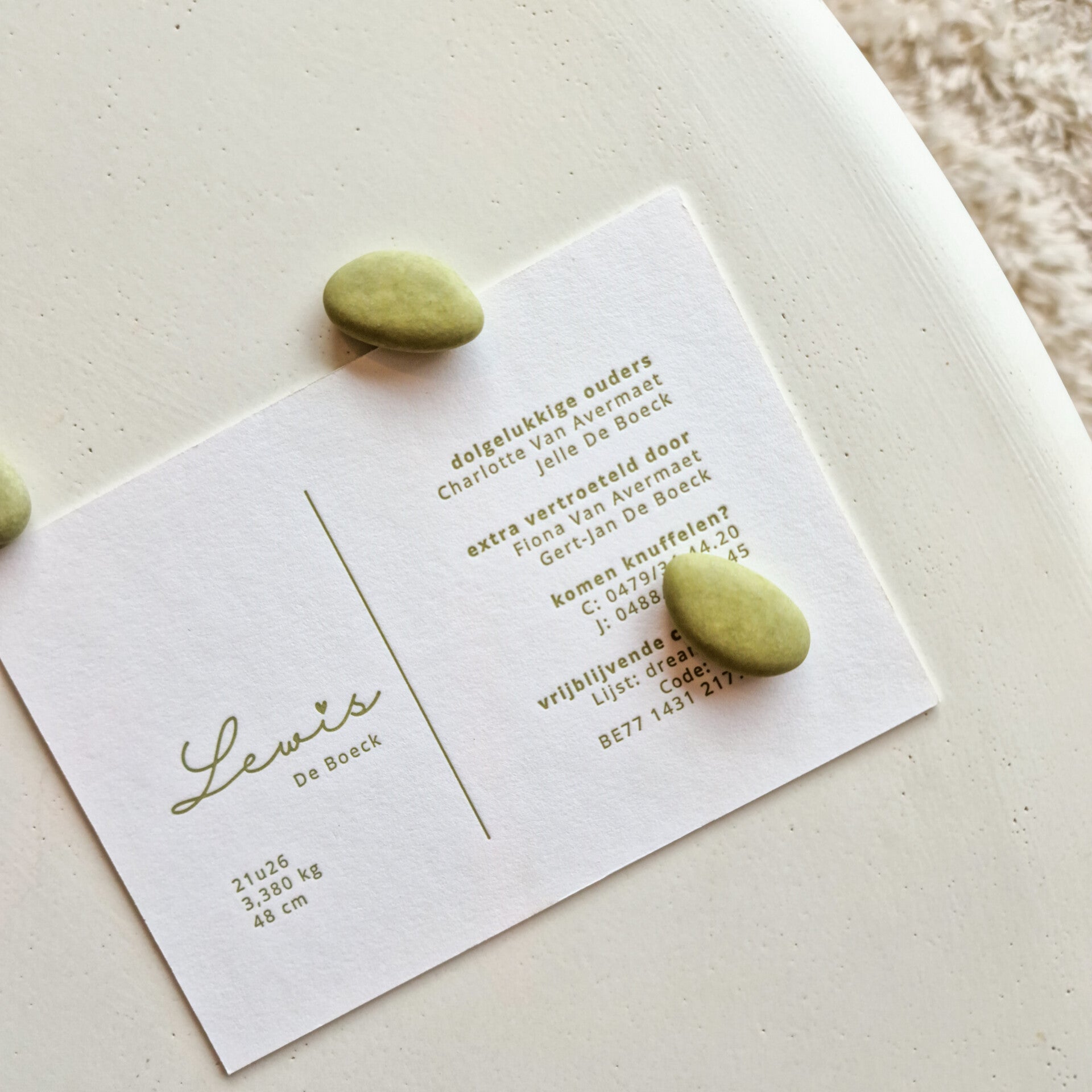 Naast je doopsuikergeheel, help ik graag jullie geboortekaartje vormgeven.
