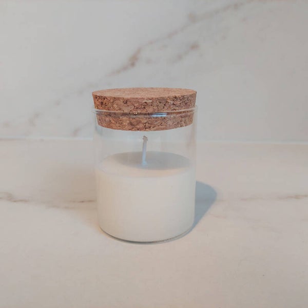 Dit zelfgemaakt kaarsje kan worden aangepast aan jouw geboorteconcept. Een bloempje in gewenste kleur wordt toegevoegd aan de kaars.