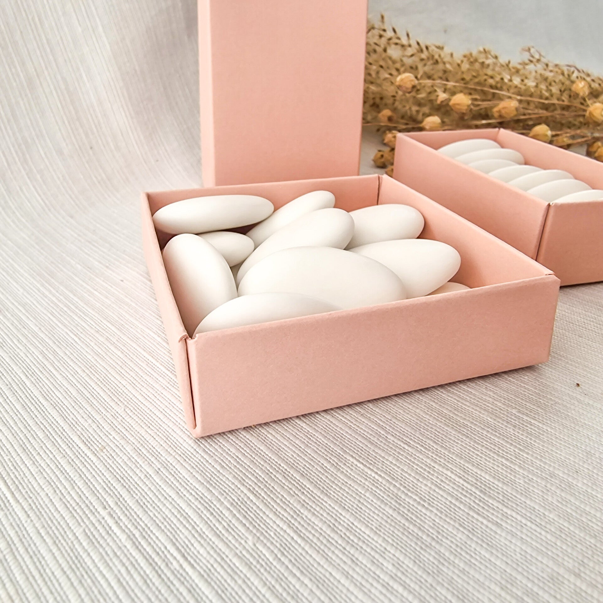 De schuifdoosjes en vierkante doosjes zijn standaard met een mica wikkel (transparant).