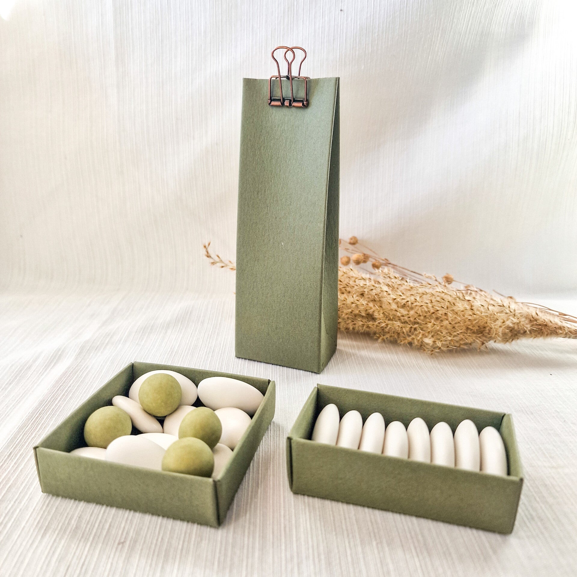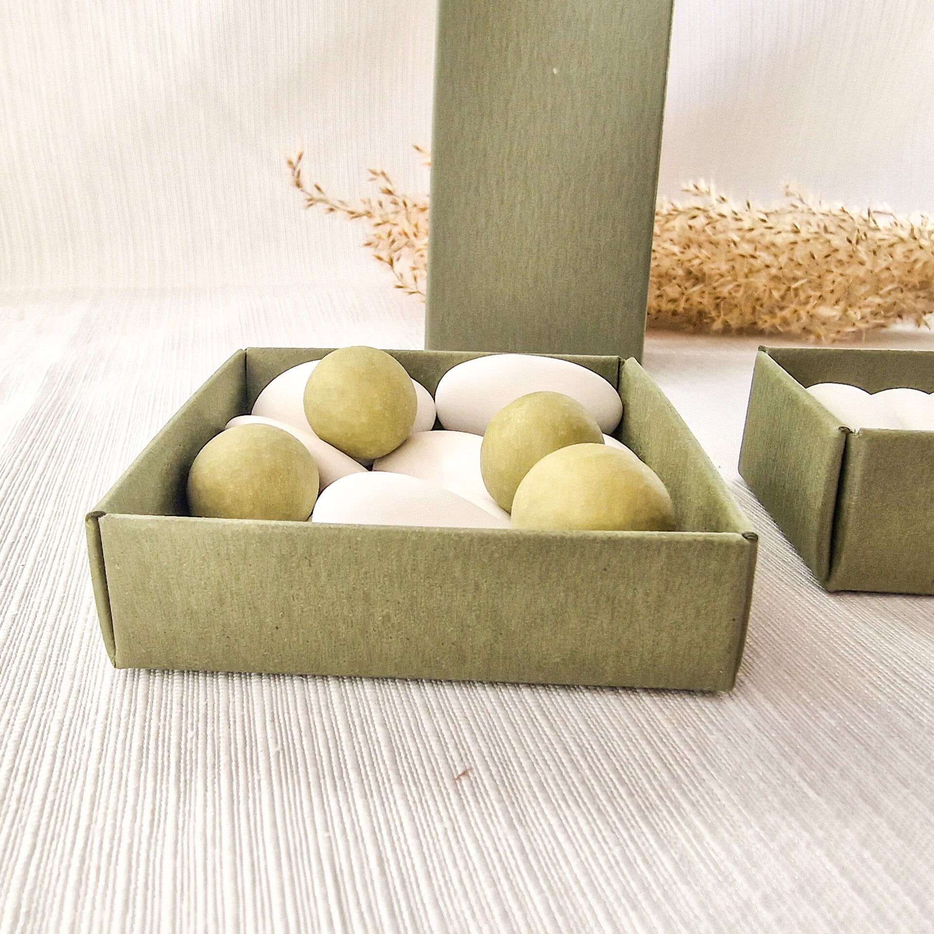 De schuifdoosjes en vierkante doosjes zijn standaard met een mica wikkel (transparant).