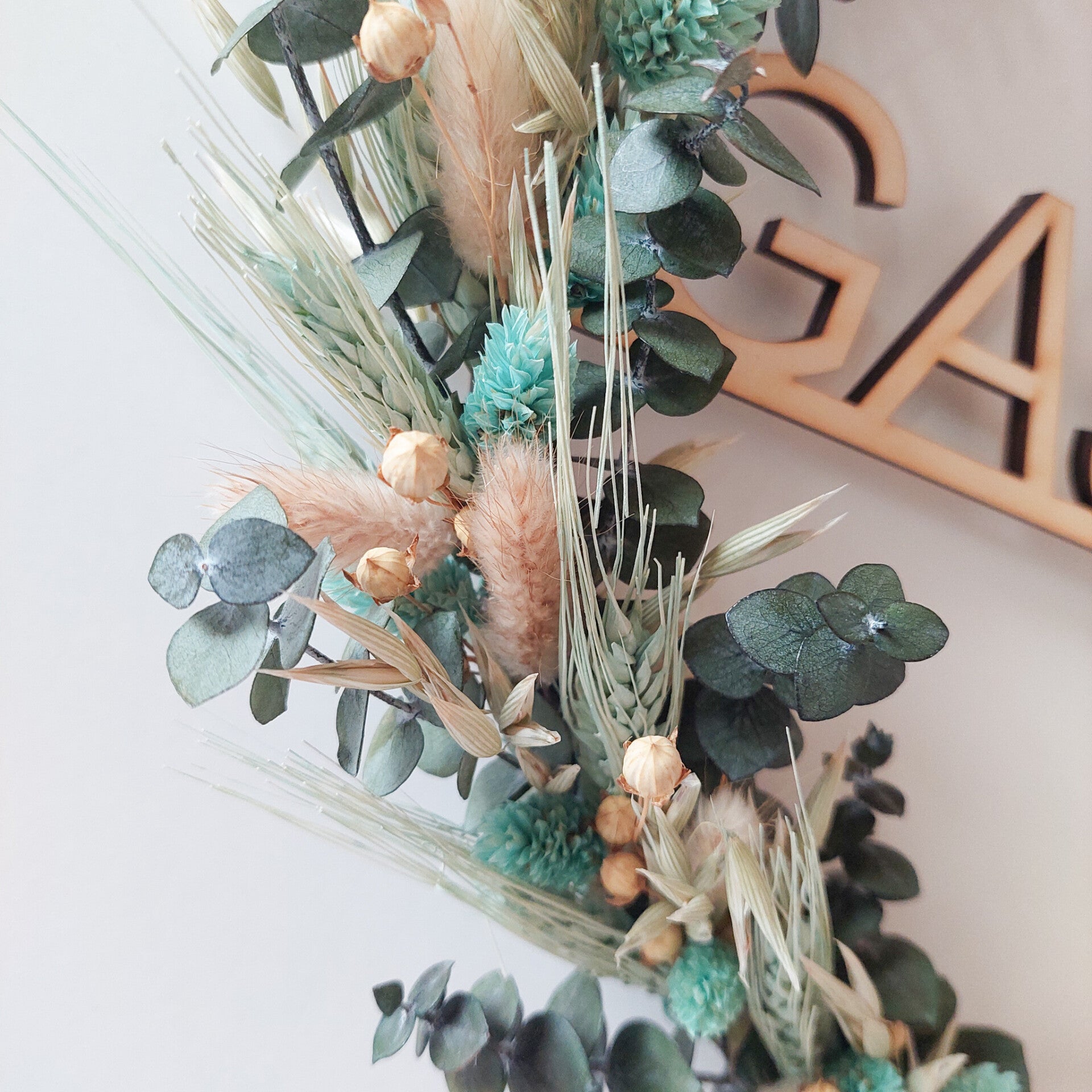 Voor de kleuren van de bloemen, kan je de gewenste tint doorgeven. Zo kunnen we een aangepaste hoepel maken adhv jouw geboorteconcept en/of geboortekaartje.