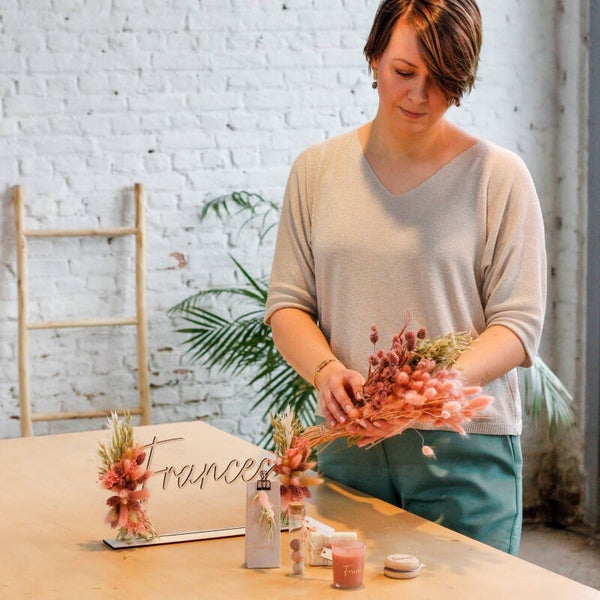 De zijkanten worden voorzien van droogbloemen in kleurtint naar keuze.